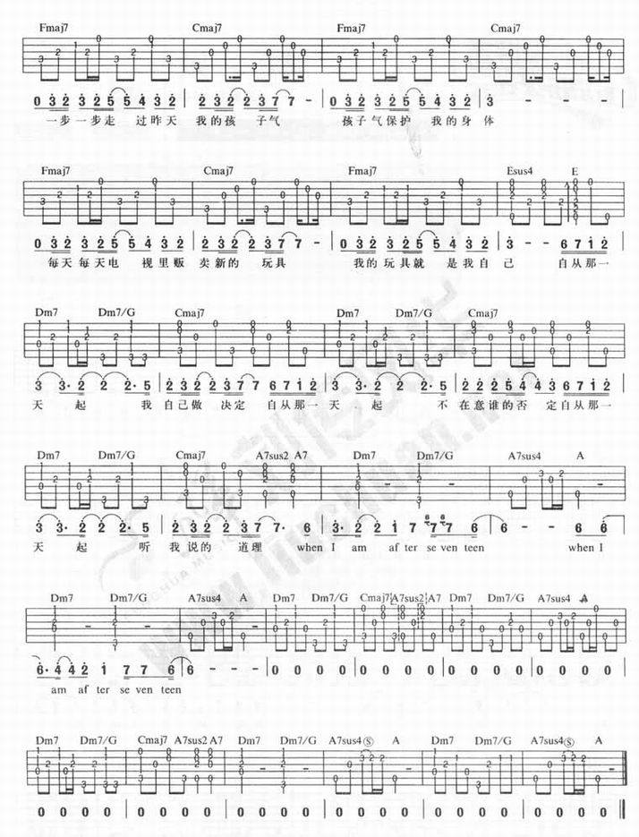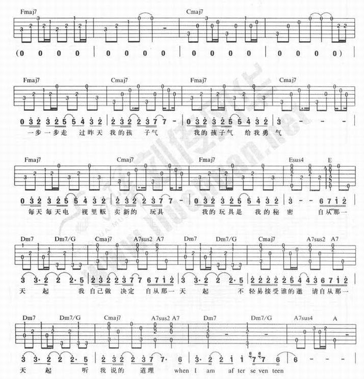 After 17-陈绮贞(吉他谱 吉他曲谱 吉他六线谱 吉他歌谱 吉它谱 影视吉他谱)