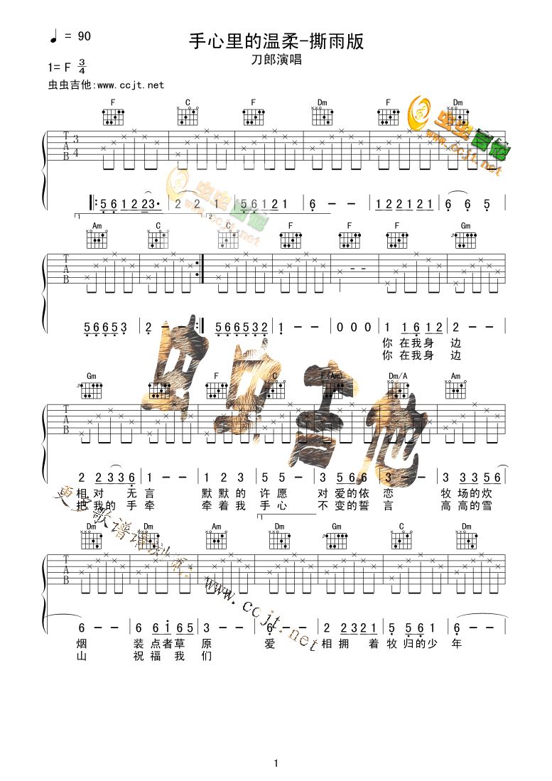 手心里的温柔-刀郎(吉他谱 吉他曲谱 吉他六线谱 吉他歌谱 吉它谱 影视吉他谱)