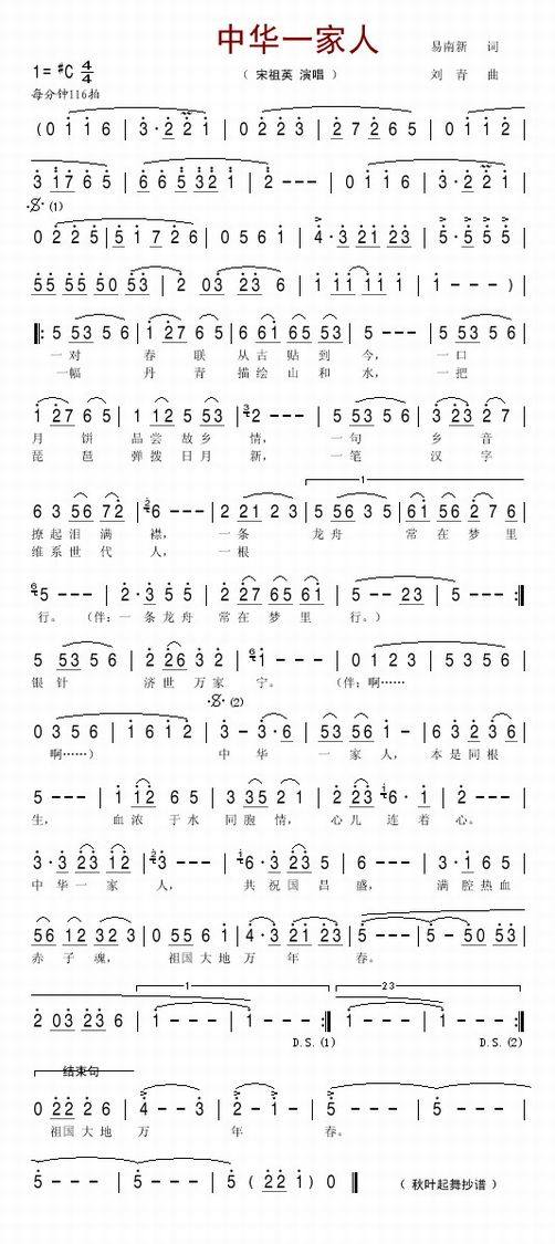 >> 中华一家人-宋祖英(简谱)