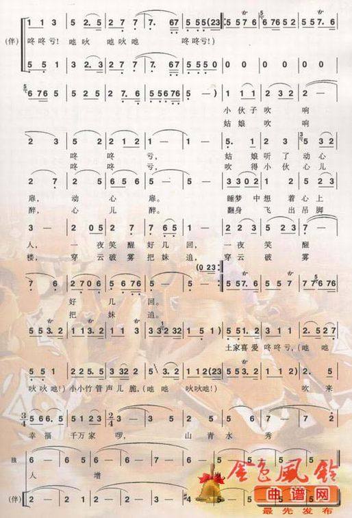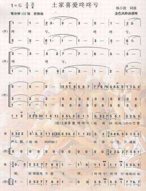 >> 土家喜爱咚咚亏-宋祖英(简谱)