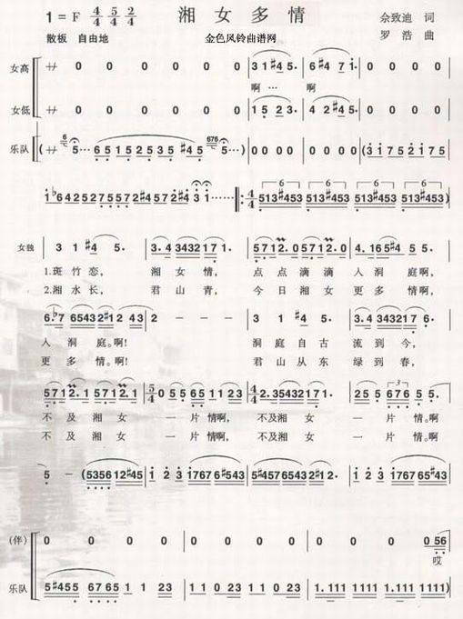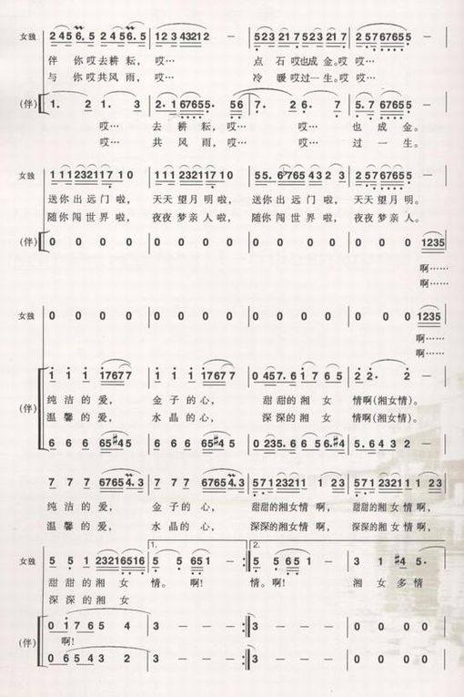 湘女多情-宋祖英(简谱 歌谱 歌曲简谱 合唱简谱 民歌简谱 影视简谱)