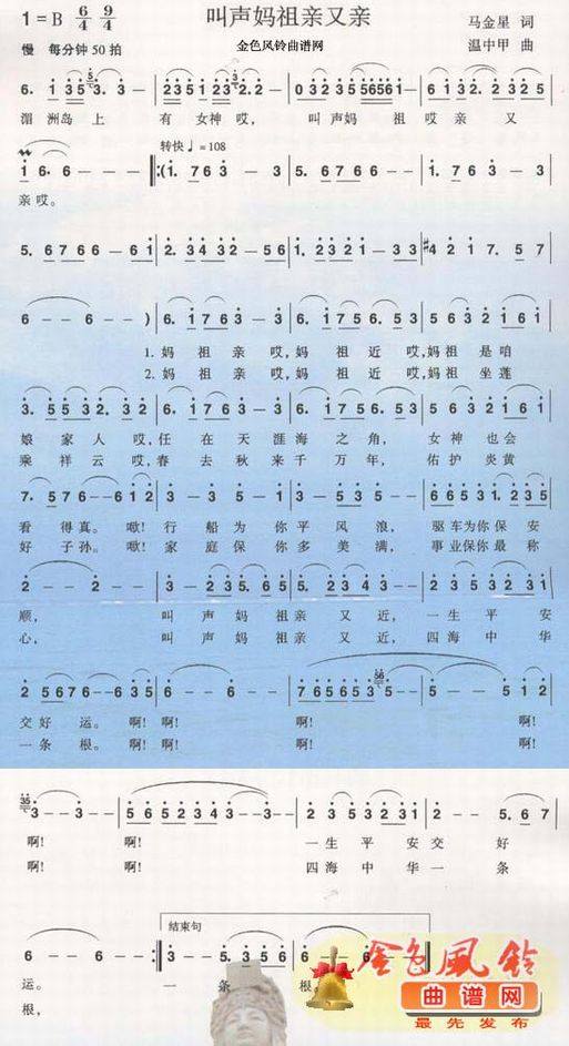 叫声妈祖亲又亲-宋祖英(简谱 歌谱 歌曲简谱 合唱简谱 民歌简谱 影视简谱)