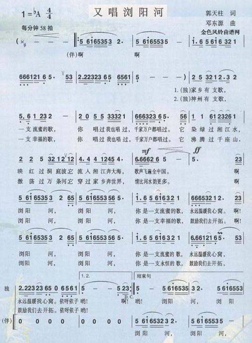 又唱浏阳河-宋祖英(简谱 歌谱 歌曲简谱 合唱简谱 民歌简谱 影视简谱)