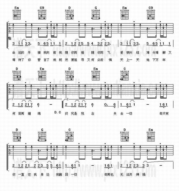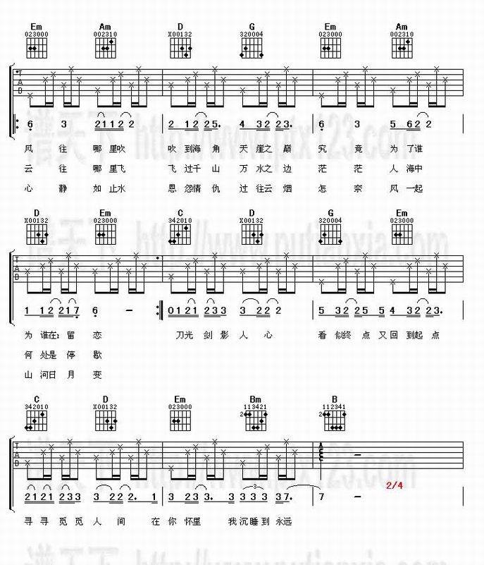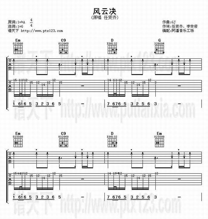 风云决-任贤齐(吉他谱 吉他曲谱 吉他六线谱 吉他歌谱 吉它谱 影视吉他谱)