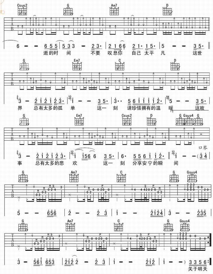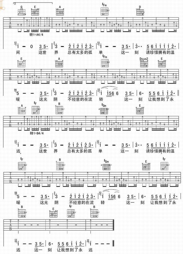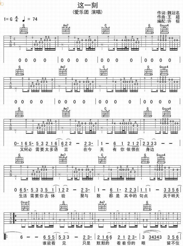 这一刻-新谱三团(吉他谱 吉他曲谱 吉他六线谱 吉他歌谱 吉它谱 影视吉他谱)