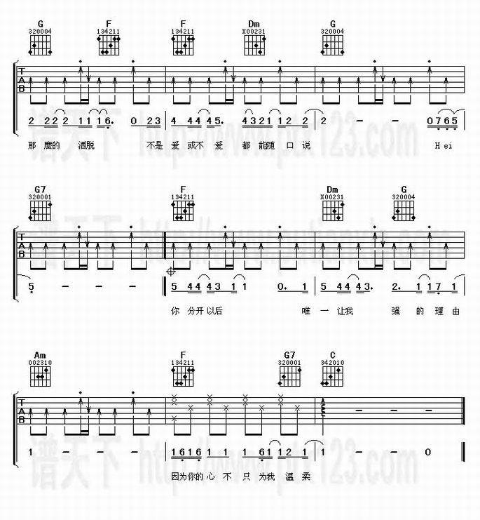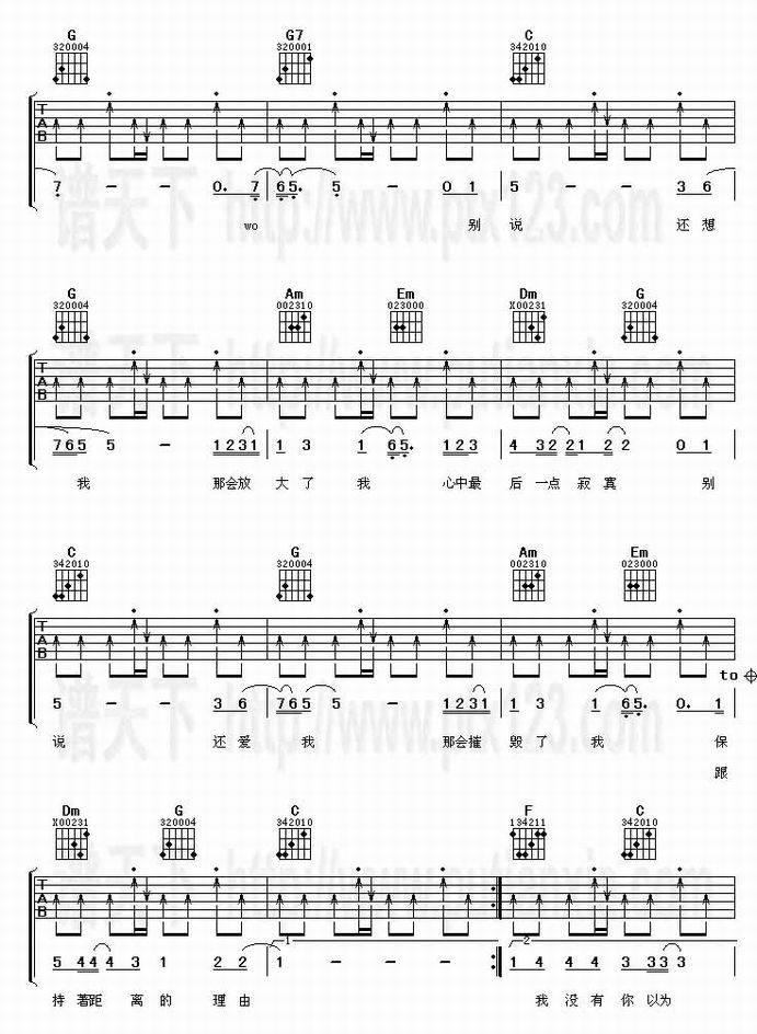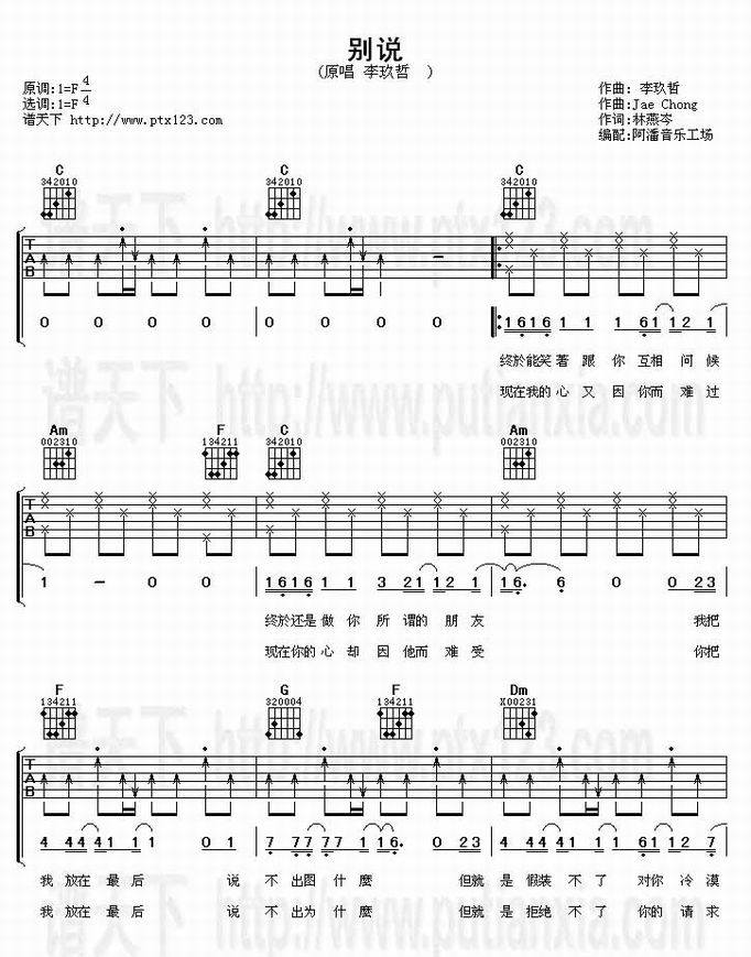 别说-李玖哲(吉他谱 吉他曲谱 吉他六线谱 吉他歌谱 吉它谱 影视吉他谱)