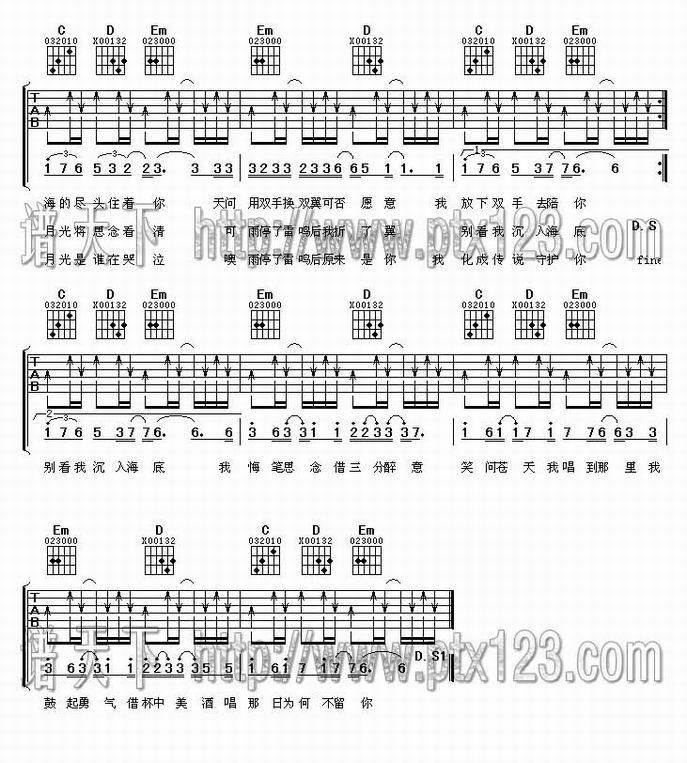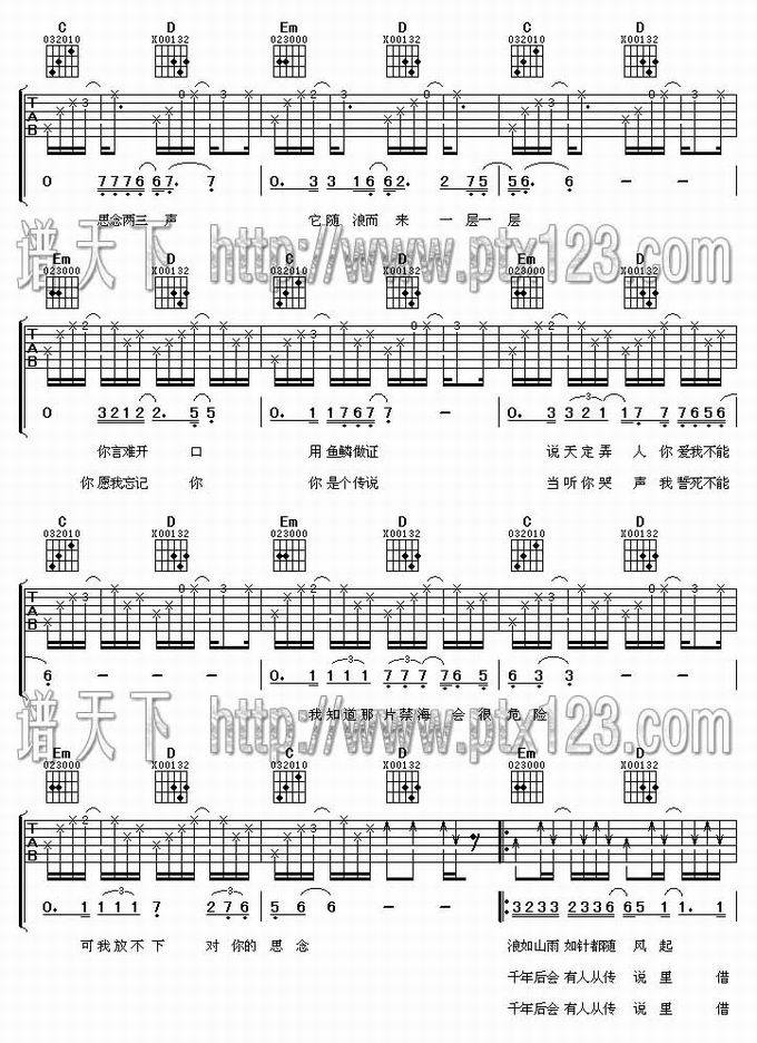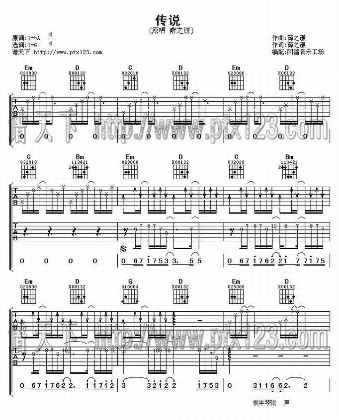 传说-薛之谦(吉他谱 吉他曲谱 吉他六线谱 吉他歌谱 吉它谱 影视吉他谱)