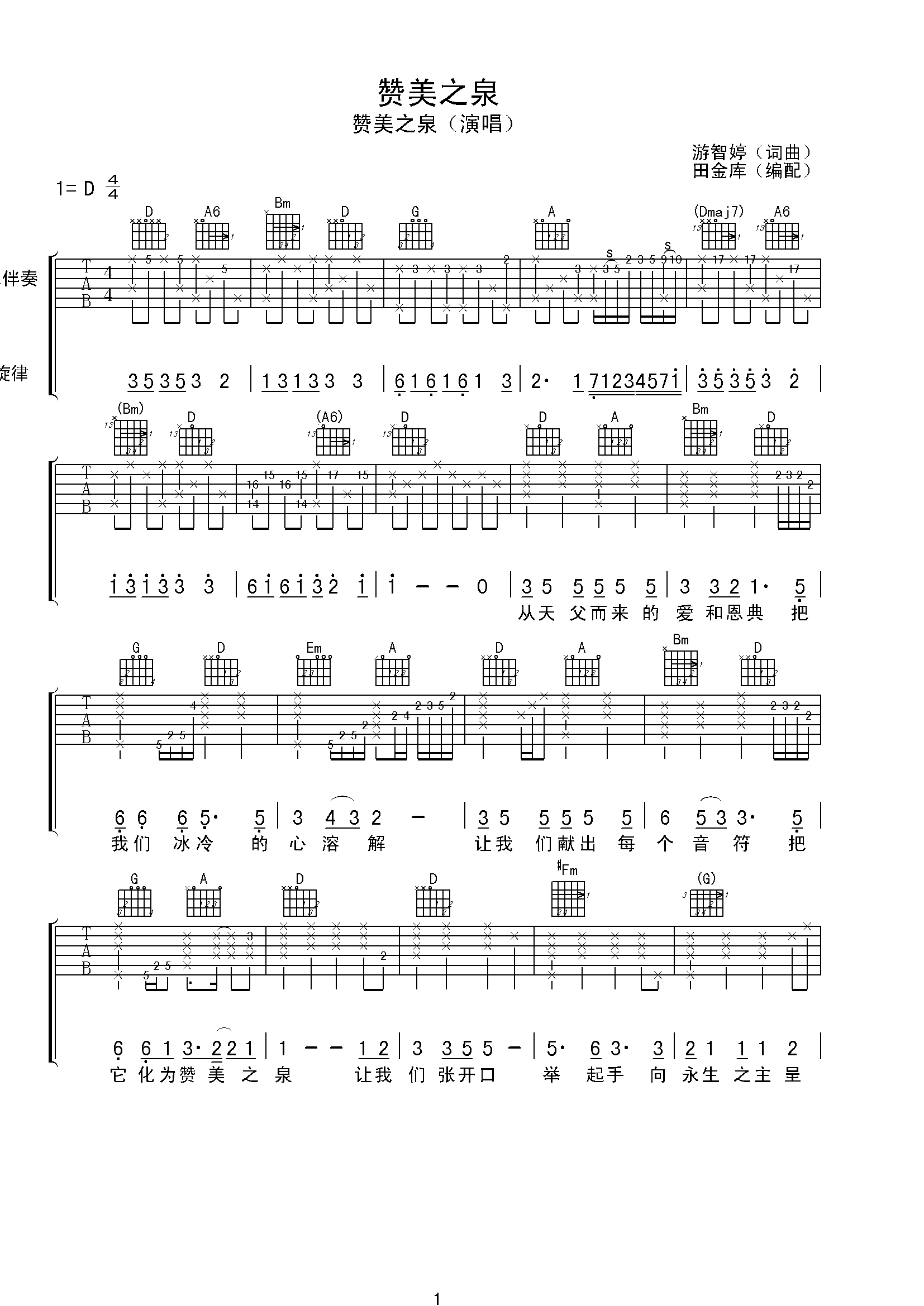 赞美之泉-吉他谱