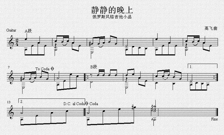 静静的晚上-吉它曲谱