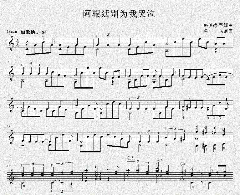 阿根廷别为我哭泣-吉它曲谱