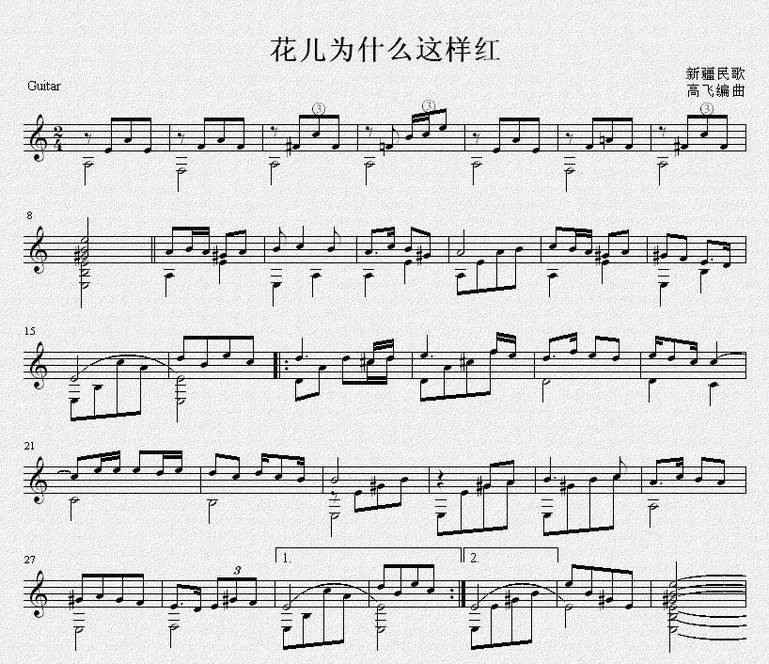花儿为什么这样红-吉它曲谱