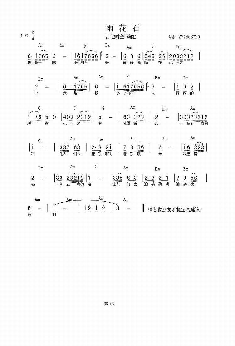 雨花石-简谱+和弦