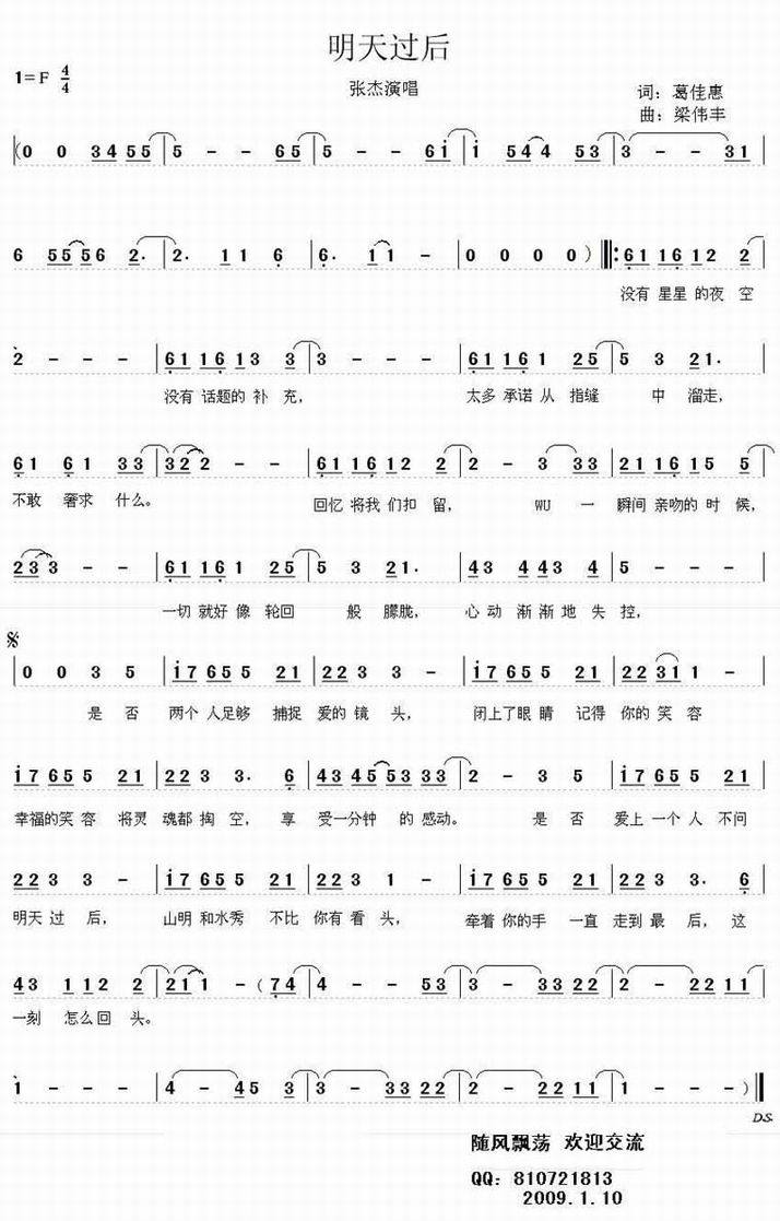 张杰的歌-明天过后,我用雅乐简谱软件制谱后,保存为图片格式。