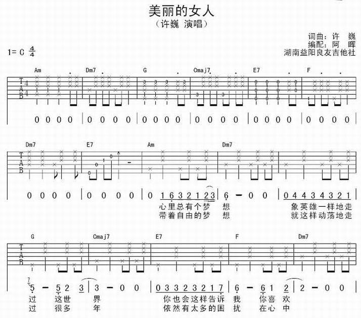 美丽女人-许巍(吉他谱 吉他曲谱 吉他六线谱 吉他歌谱 吉它谱 影视吉他谱)