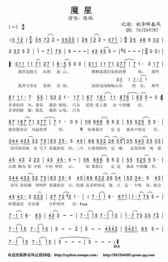 >> 魔星—陈瑞(简谱)