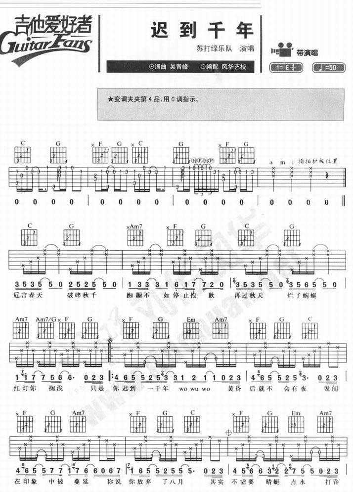 迟到千年-苏打绿乐队(吉他谱 吉他曲谱 吉他六线谱 吉他歌谱 吉它谱 影视吉他谱)