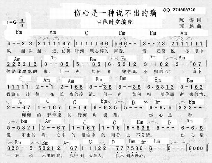 >> 伤心是一种说不出的痛-黄格选(简谱+和弦)
