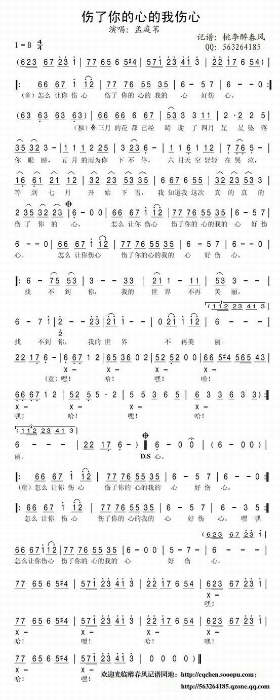 >> 伤了你的心的我伤心(完整简谱)—孟庭苇