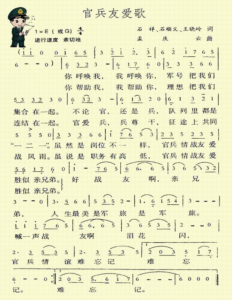 官兵友爱歌-军旅歌曲(简谱 歌谱 歌曲简谱 合唱简谱 民歌简谱 影视简谱)