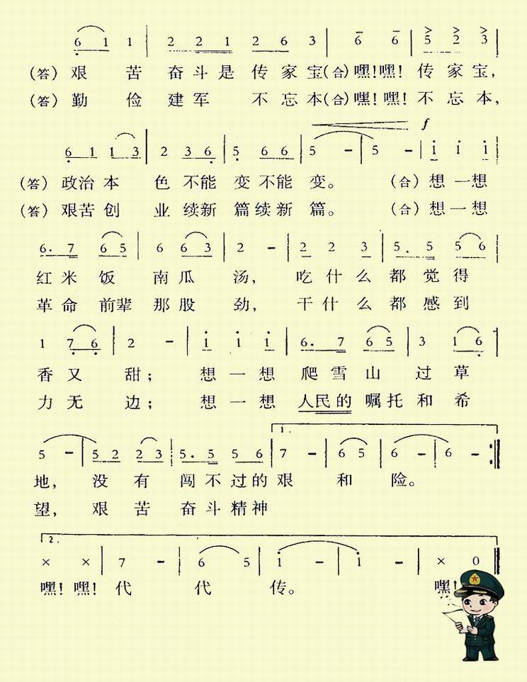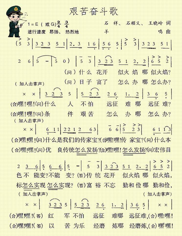 艰苦奋斗歌-军旅歌曲(简谱 歌谱 歌曲简谱 合唱简谱 民歌简谱 影视简谱)