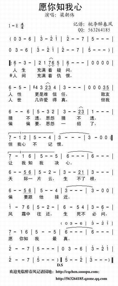 >> 愿你知我心(梁朝伟版绝代双娇主题曲)—梁朝伟(简谱)