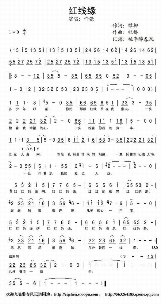>> 红线缘—许强(简谱)