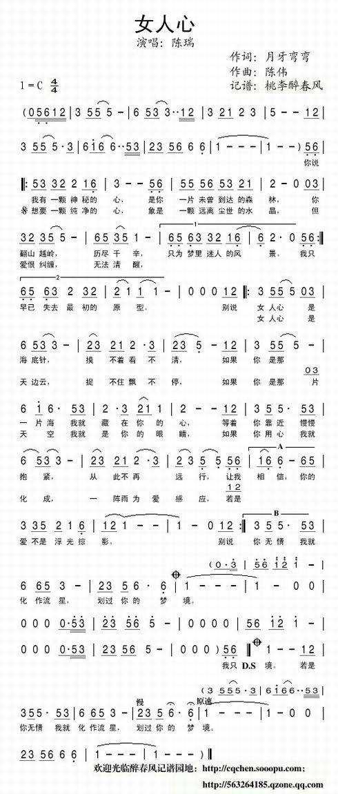 >> 女人心—陈瑞(简谱)