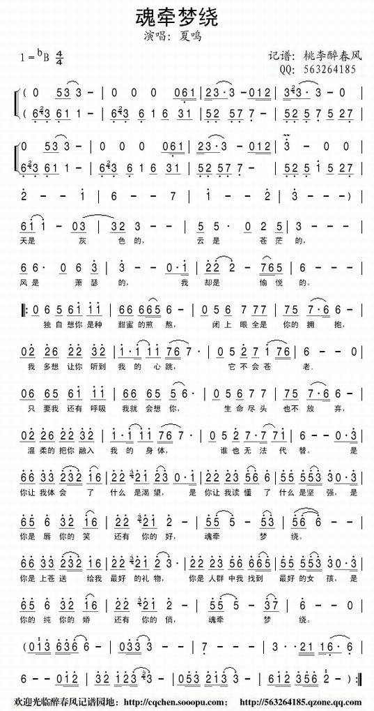 魂牵梦绕—夏鸣(简谱 歌谱 歌曲简谱 合唱简谱 影视简谱)