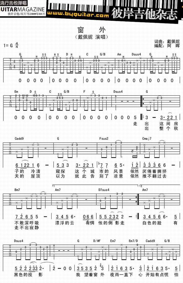 窗外-戴佩妮(吉他谱 吉他曲谱 吉他六线谱 吉他歌谱 吉它谱 影视吉他谱)
