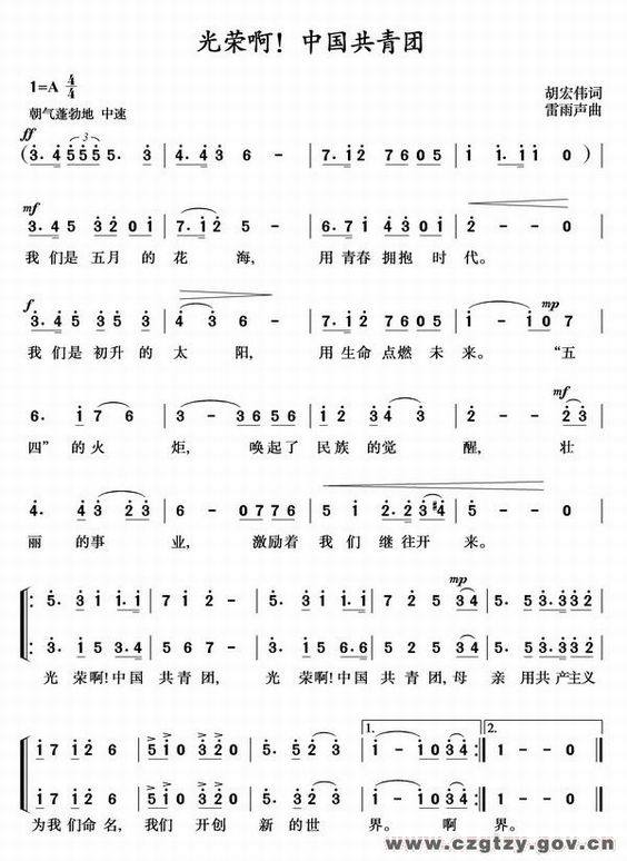 光荣啊中国共青团-团歌(简谱 歌谱 歌曲简谱 合唱简谱 影视简谱)