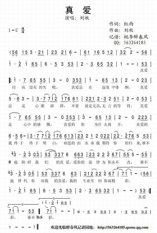 真爱-刘牧(简谱 歌谱 歌曲简谱 合唱简谱 影视简谱)