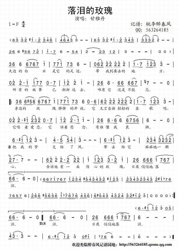 >> 落泪的玫瑰——甘雅丹(简谱)