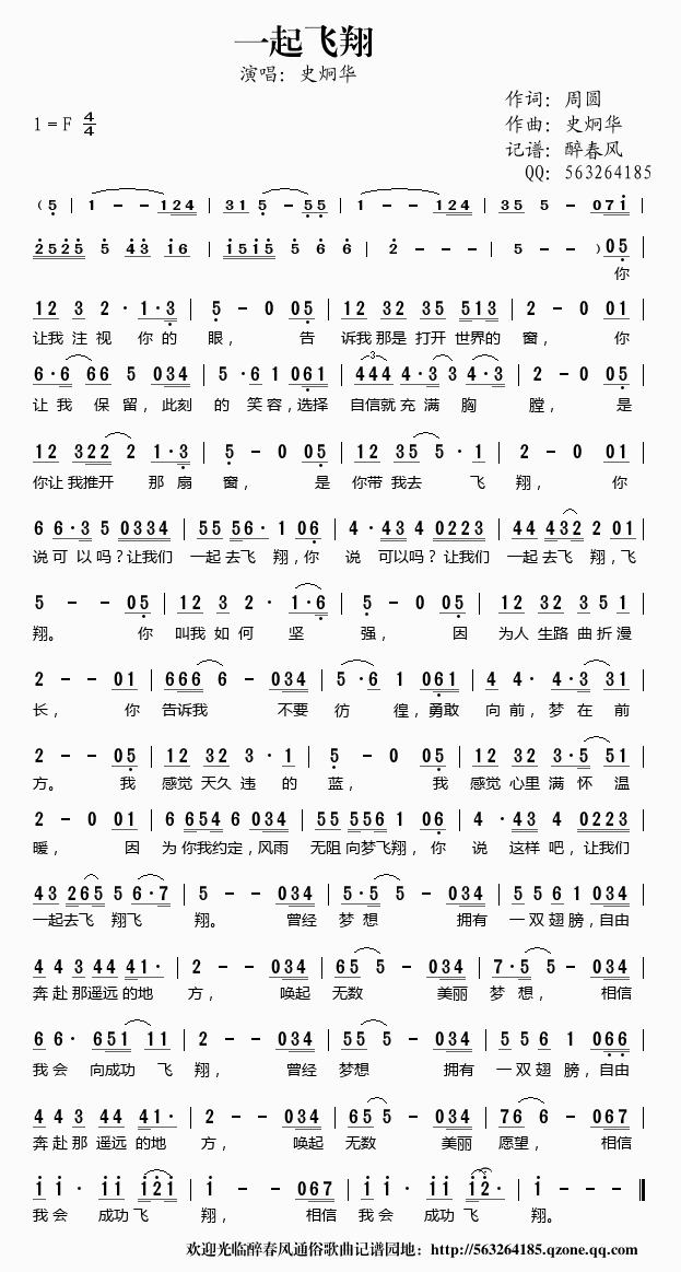 >> 一起飞翔——史炯华(上海教师节歌曲)(简谱)