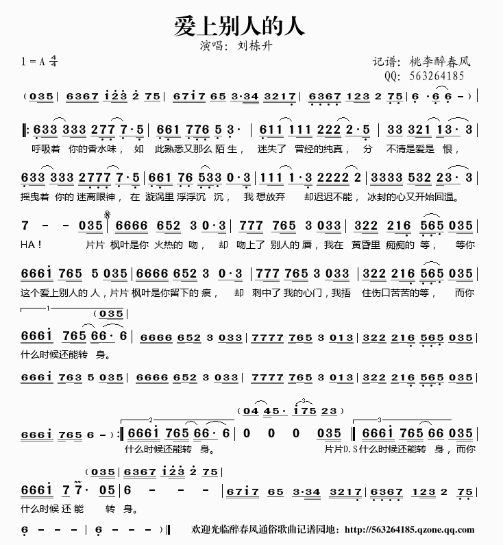 >> 爱上别人的人——刘栋升(简谱)