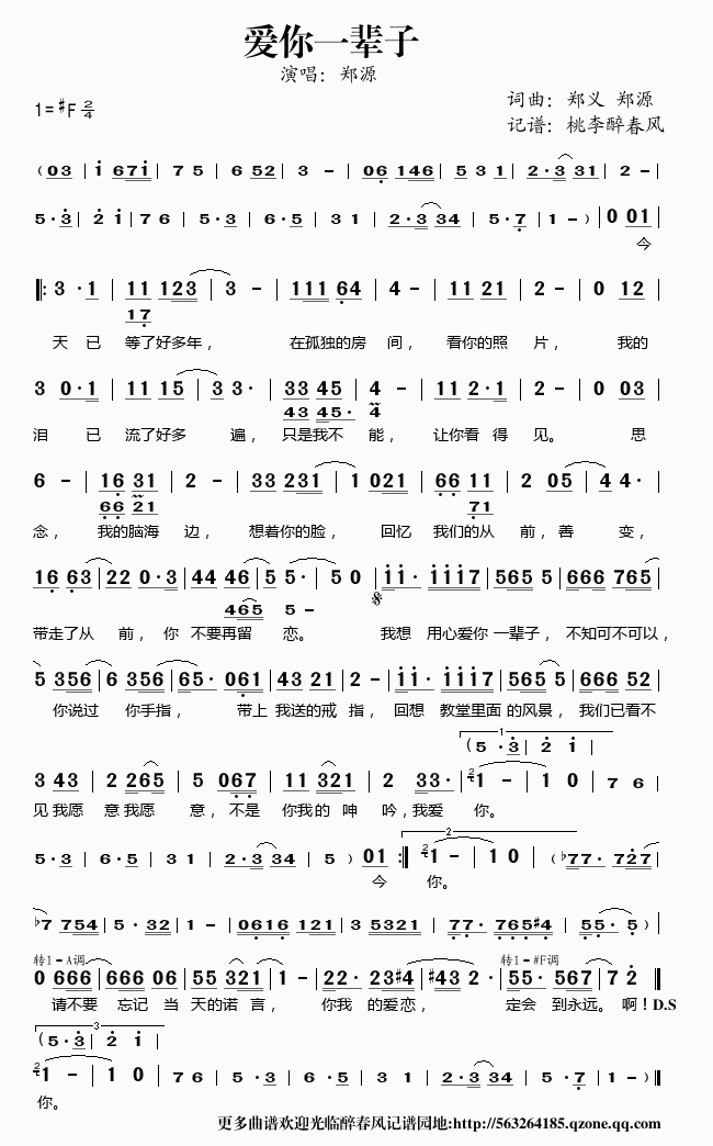 >> 爱你一辈子——郑源(简谱)