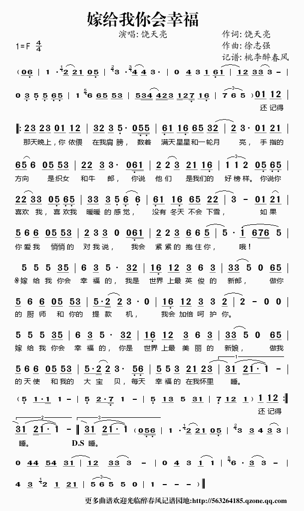 >> 嫁给我你会幸福的——饶天亮(简谱)