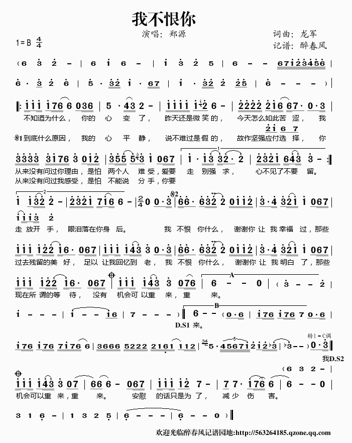 更多曲谱欢迎光临醉春风记谱园地:http://563264185.qzone.qq.com