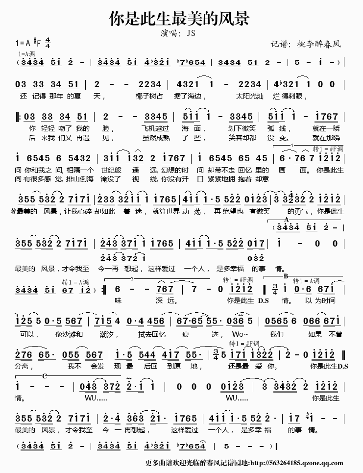 你是此生最美的风景——JS(简谱)