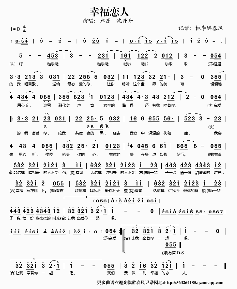 >> 幸福恋人——郑源 沈丹丹(简谱)