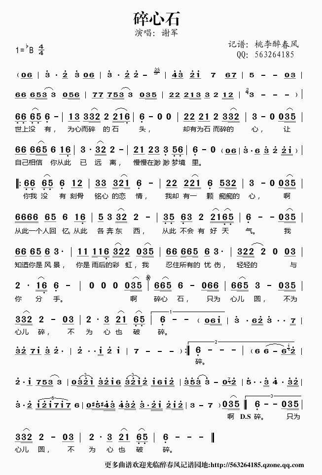 更多曲谱欢迎光临醉春风记谱园地: http://563264185.qzone.qq.com