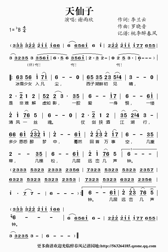 >> 天仙子——谢雨欣(简谱)