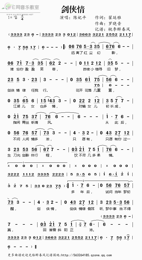 >> 剑侠情——陈妃平(简谱)