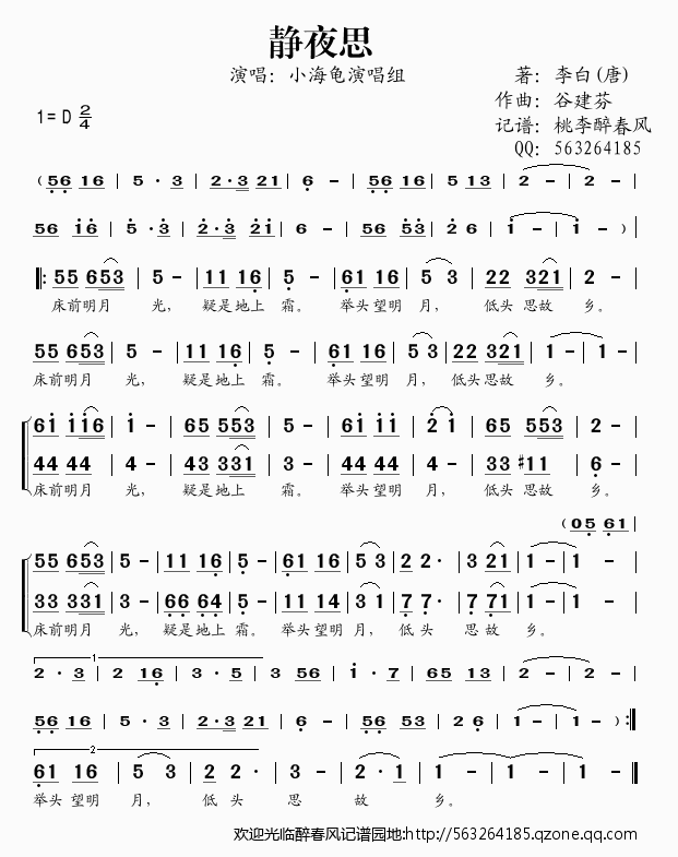 >> 谷建芬新学堂儿歌之——静夜思(简谱)