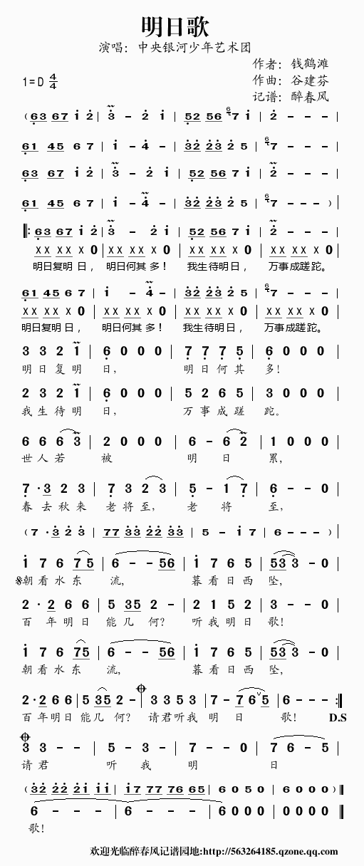 >> 谷建芬新学堂儿歌之——明日歌(简谱)