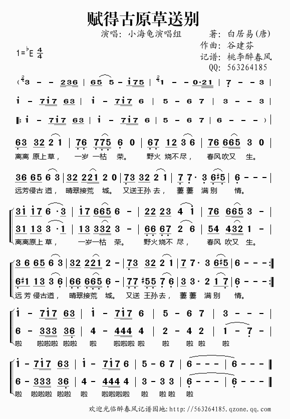 >> 谷建芬新学堂儿歌之——赋得古原草送别(简谱)