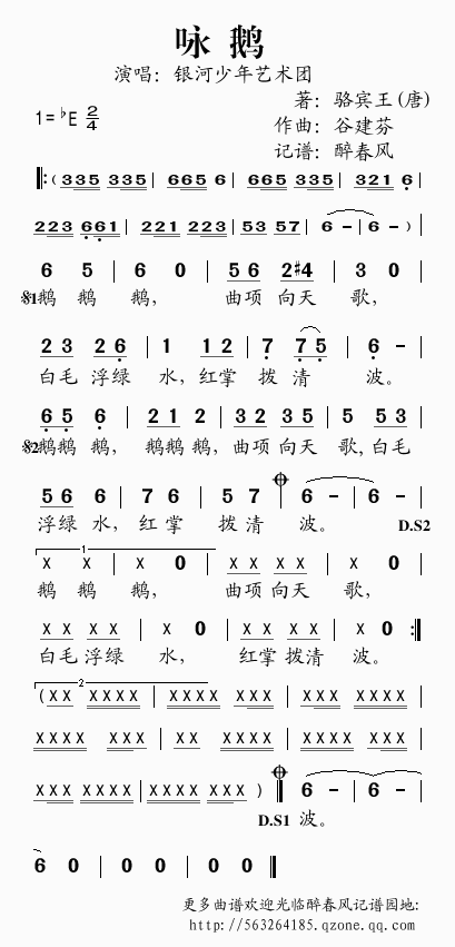 >> 谷建芬新学堂儿歌之——咏鹅(简谱)