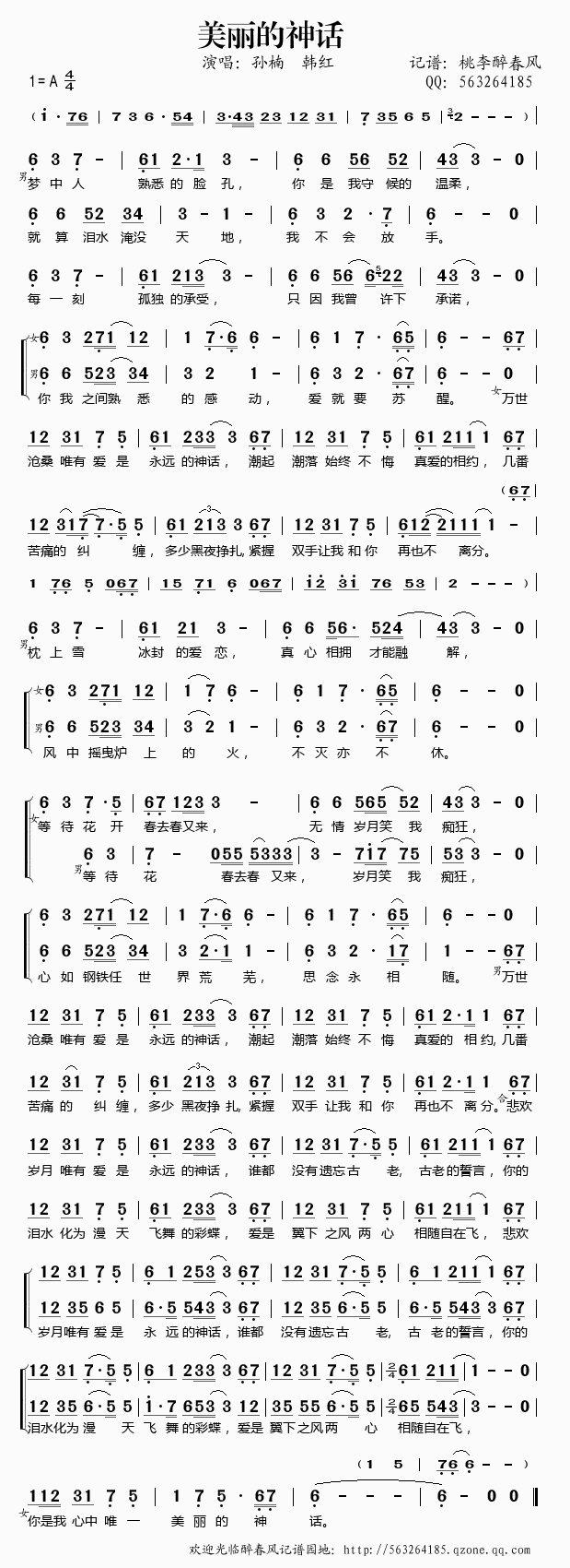 >> 美丽的神话双声部完整简谱——孙楠 韩红(简谱)