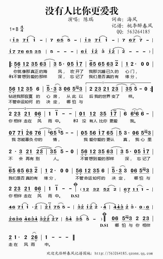 >> 没有人比你更爱我——陈瑞(简谱)