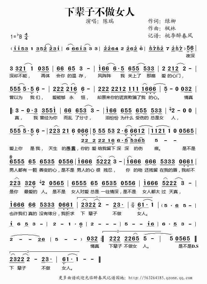 >> 下辈子不做女人——陈瑞(简谱)