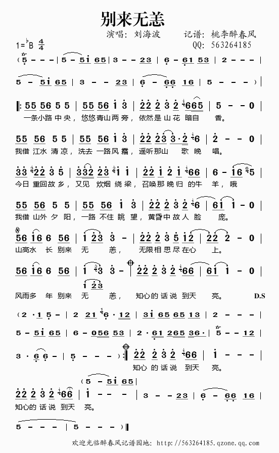 >> 别来无恙——刘海波(简谱)